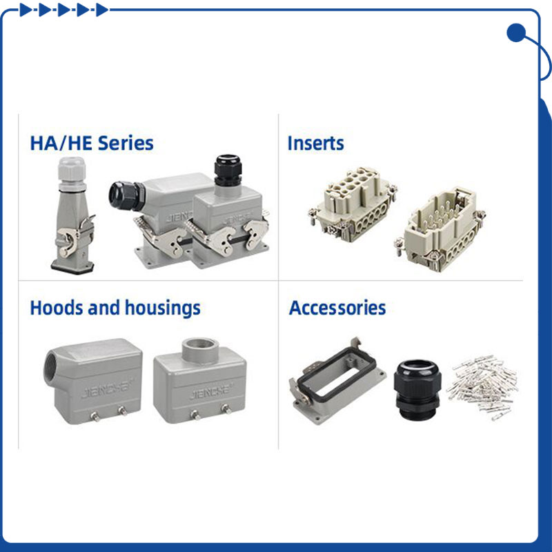Los conectores de potencia de servicio pesado son ideales para aplicaciones industriales con requisitos duros. Puede ayudar a proporcionar una solución a la amplia gama de necesidades en conectores industriales en ingeniería mecánica y de plantas. Trabajando junto con el conector de entrada de cable, conveniente para usar para proporcionar un uso fácil y salvaguardia al equipo de maquinaria cuando el transporte, la instalación, el mantenimiento o la reparación.